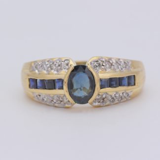 ANILLO, ORO AMARILLO 18K, DIAMANTES Y ZAFIROS